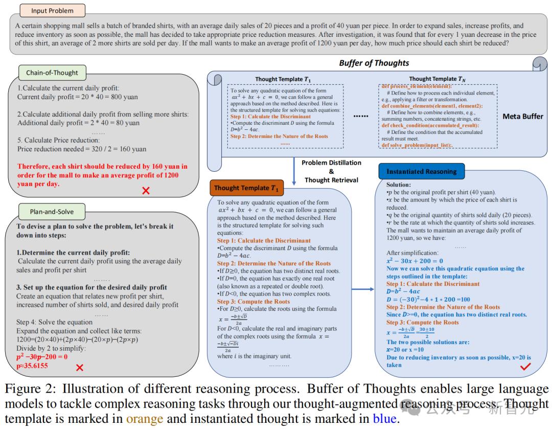 它可以将每个具体解决方案推广到更多问题中,并以思维模板的形式将关键的蒸馏知识存储在元缓冲区中。