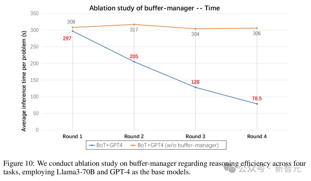 这是因为随着元缓冲区的不断扩展,检索到合适思维模板的可能性也增加。因此,模型可以避免从头构建推理结构,从而相应地提高推理效率。