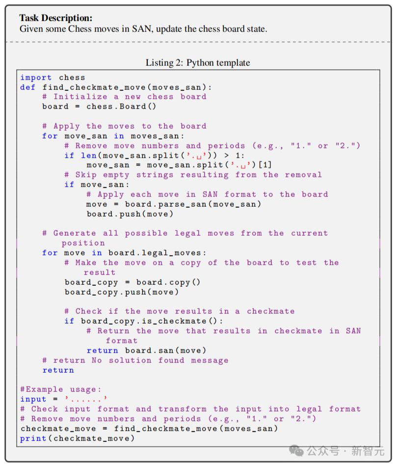 在这项任务中,LLM需要根据给定的国际象棋的标准代数记谱法(SAN)棋步,更新棋盘状态。