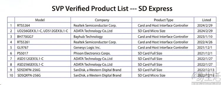 在2024年最新的SD协会认证信息中可以看到,过去两年间都没有几款SDExpress设备面世