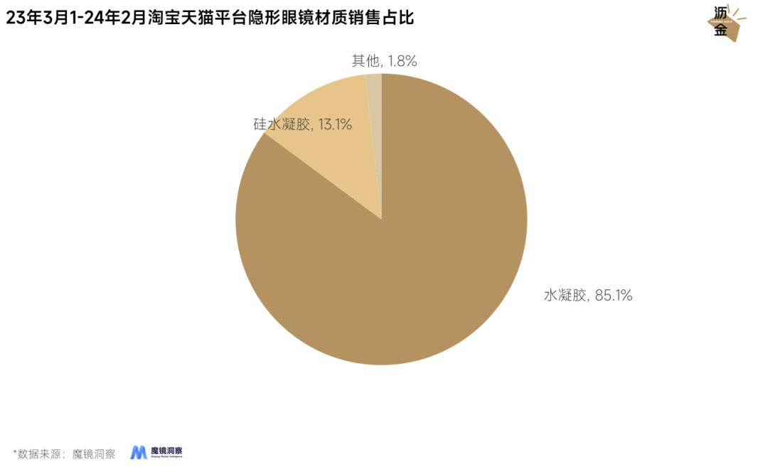 23年3月1-24年2月淘宝天猫平台隐形眼镜材质销售占比