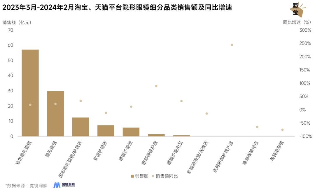 接下来看隐形眼镜市场各细分品类的销售表现。