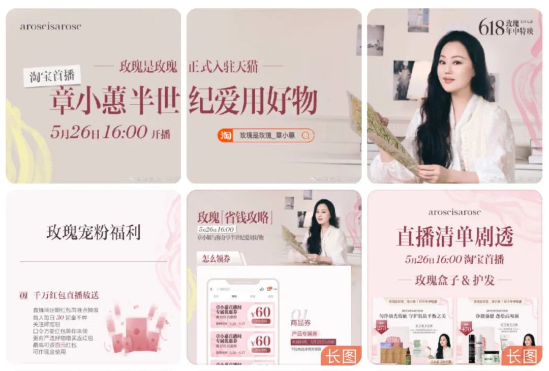 不愧是连李佳琦都抱怨难的一届618,章小蕙此番出红入淘准备得不可谓不充分,先是上线微综,再是5月13日开通微博号「玫瑰是玫瑰_章小蕙」,再是5月20日率自家「玫瑰是玫瑰」集合店入驻天猫国际,可这一系列为破圈所做努力似乎并未达到“破圈”之实。