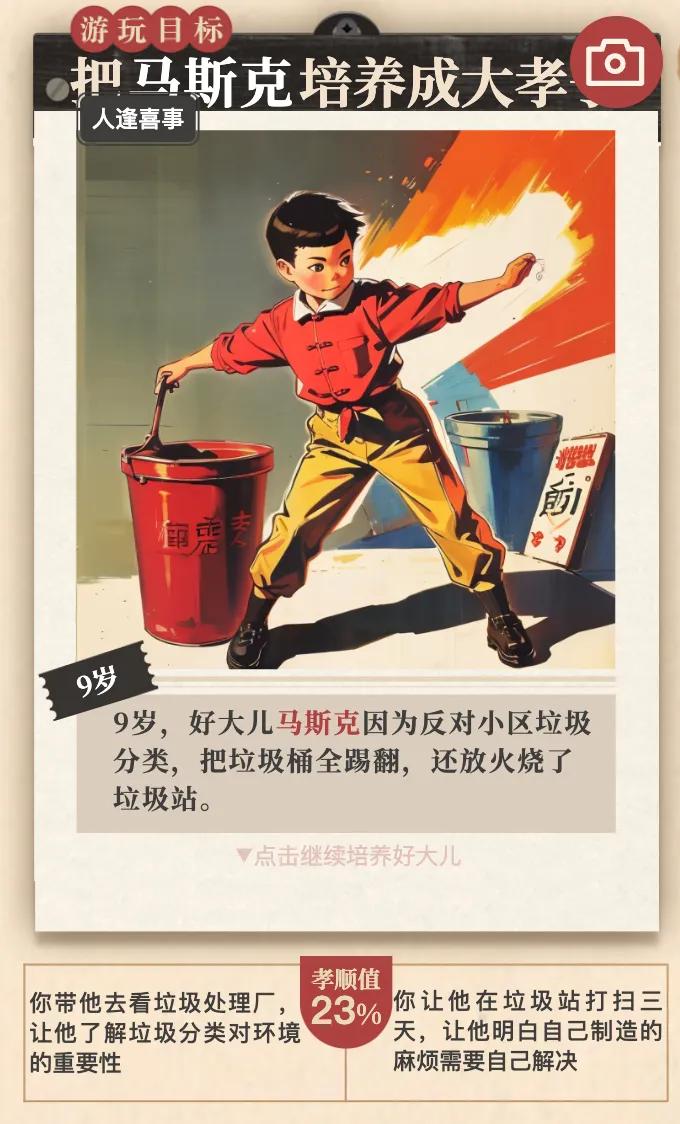 在这款奇葩的赛博“养娃”游戏中,用户面对熊孩子闹出的各种“意外”,要不断进行选择,并尽力达成各项数值的圆满、最终炼成“大孝子”。