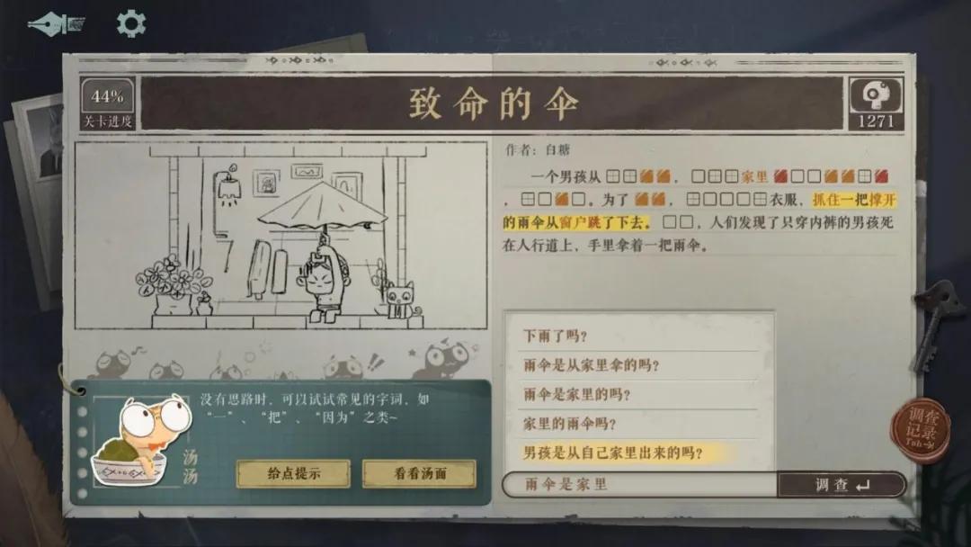 例如,在游戏中,在某个关于男孩死亡的悬疑故事中,玩家可以根据线索,向AI提出“下雨了吗?”、“雨伞是家里的吗?”之类的问题,从而帮助还原事件真相。
