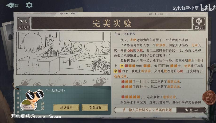 在具体的玩法上,加入了AI的《海龟蘑菇汤》,仍旧沿袭了Situation puzzle的经典玩法,主玩家需要在简要的提示下,推理故事中的主要关键词,并还原整个故事。