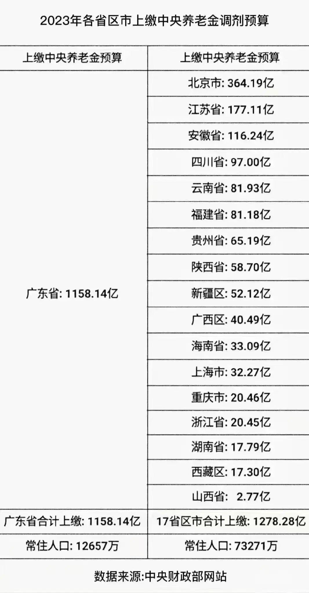 2023年,中国的“基本养老保险全国统筹”共有18个省市区需要上缴资金,总数超过2439亿。猜猜广东占了多少?