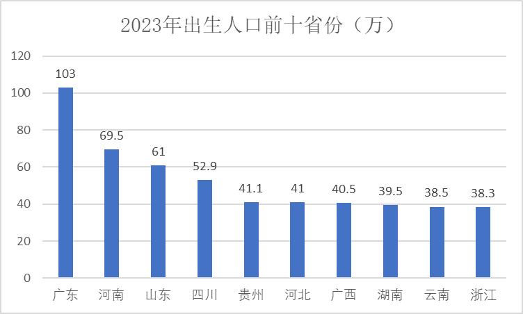 广东2023年出生人口达到103万人,连续六年成为第一生育大省,全国每10个新生儿里,就有1个出生在广东。