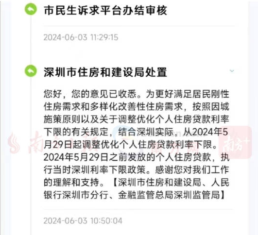 和慧慧一样盼着存量房贷下降的深圳购房者中,有人特意跑到市民生诉平台去咨询,得到了官方版本的回复:
