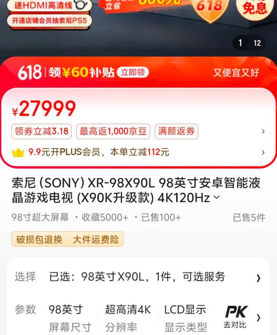 相比之下,比它更大的 98 寸 LCD 只要两万多。