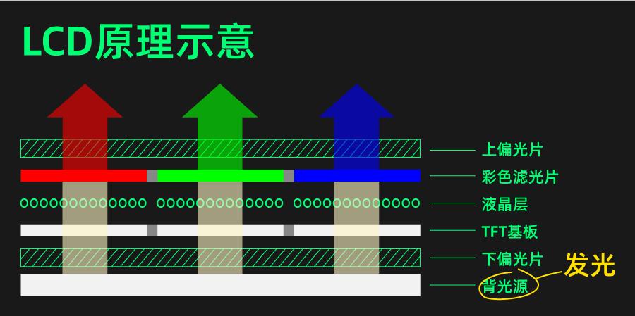这意味着 OLED 可以为红、绿、蓝三种基本颜色的子像素提供独立的光源,每个子像素都能根据需要调整亮度。