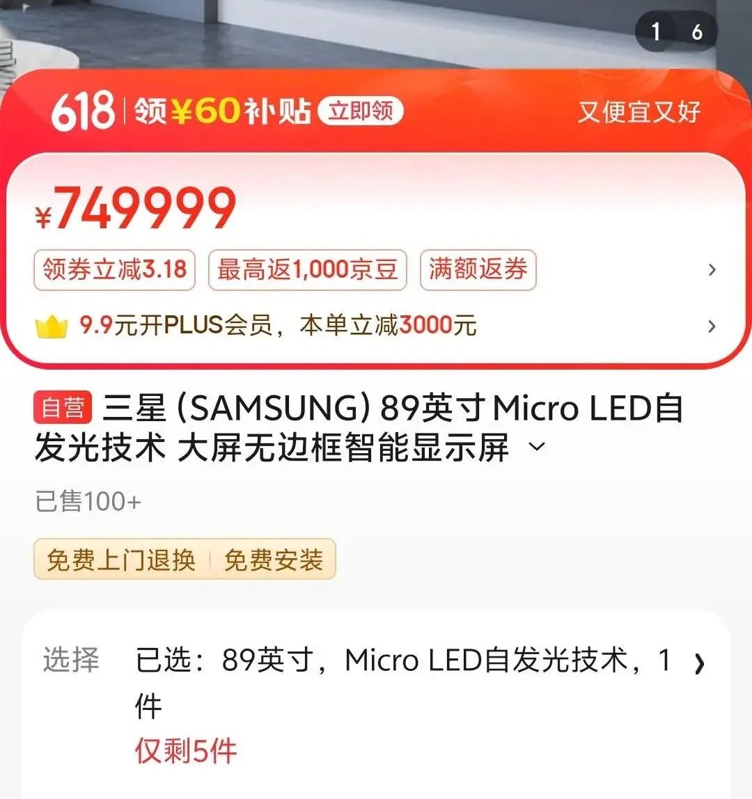 但往往这种这也好那也好的技术,都会有一个共同的缺点——贵。率先吃上 Micro LED 的三星,已经给我们打了个样,一台 89 寸 Micro LED 显示器价格都冲 75 万去了。