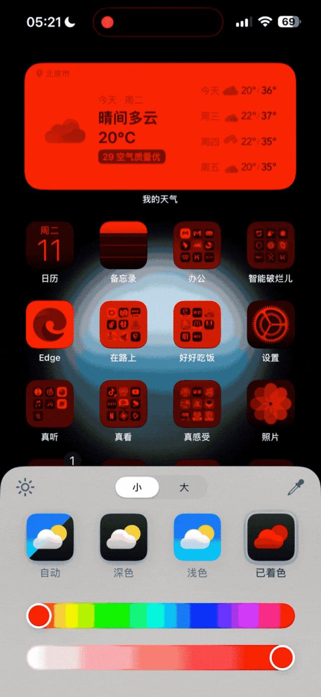 除此之外,现在 iOS 18 还允许用户更改整个应用图标的色调,可以搭配背景让整个桌面拥有更高的统一度,而Android在此前已经推出了类似的「图标匹配主题 Beta版」功能。