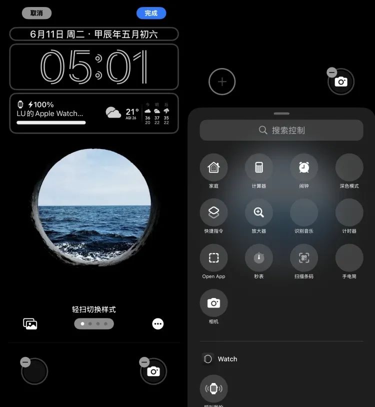 当然,锁屏界面的两个快捷键也支持自定义功能,现在你可以随便的将其换为自己常用的功能(澎湃OS好好学学吧)。