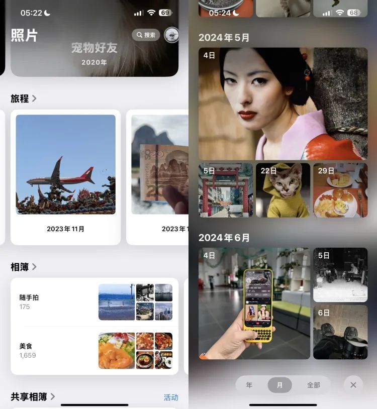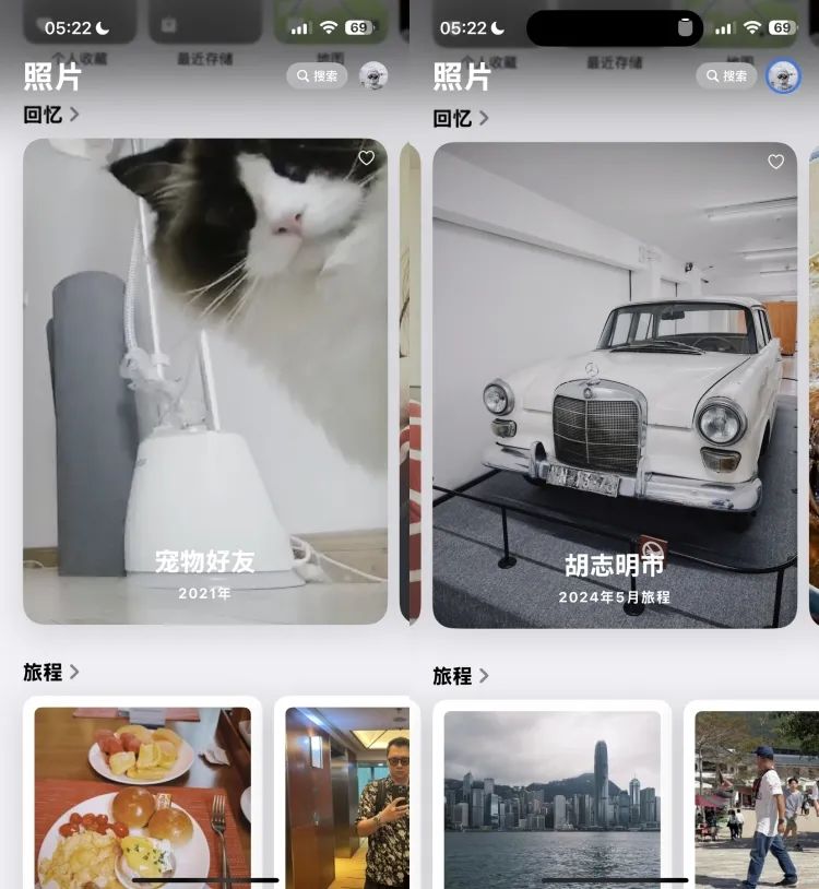 新版的相册 APP 不仅支持按照人物、宠物、地点进行分类,还会智能的按照旅行时间创建不同的“旅程相册”。