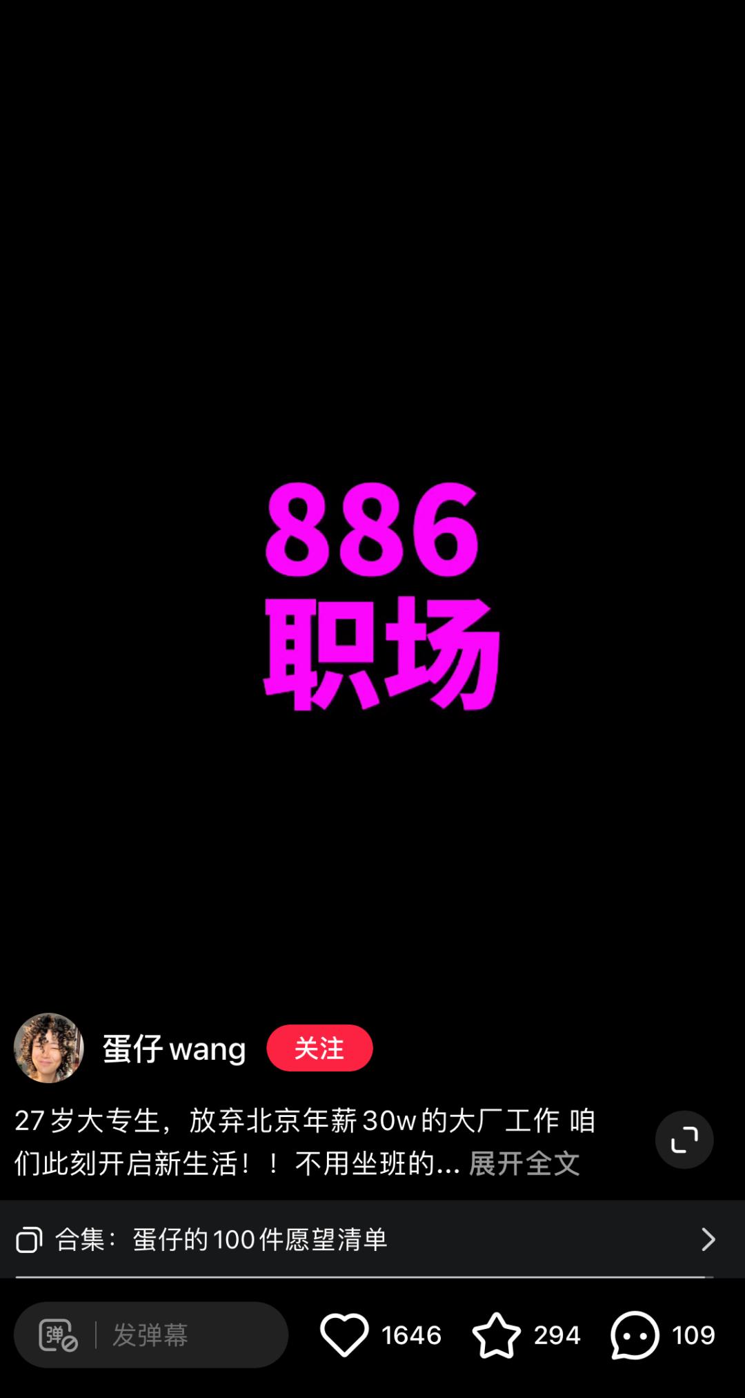 在 @蛋仔wang离职的交接期,她剪辑了一个关于离职和自我介绍的视频发在小红书上,标题为《27岁大专生,放弃北京年薪20万的大厂工作》。