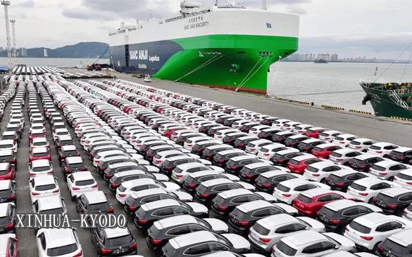 中国港口等待出口的新能源车(1月,福建厦门,XINHUA-KYODO)