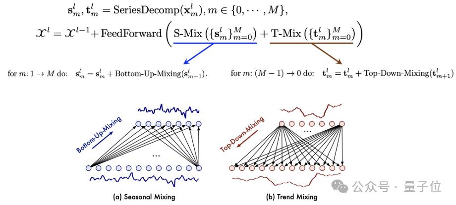 其中PDM模块,负责提取过去的信息并将不同尺度上的季节性和趋势组分分别混合。