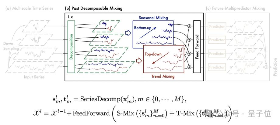 PDM以季节和趋势混合为动力,将详细的季节信息由细到粗逐步聚合,并利用较粗尺度的先验知识深入挖掘宏观趋势信息,最终实现过去信息提取中的多尺度混合。