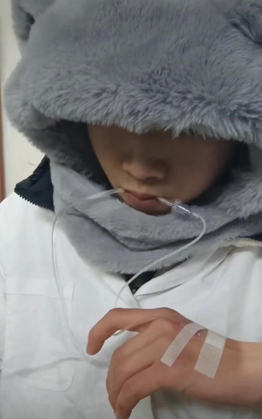 胡依文甚至得做自己的医生。今年2月他牙齿发炎,他笑称“终于自己给自己安排上了”。视频中,他从医药箱中取出输液器,卷起衣袖,露出手臂上的一块皮肤,用酒精棉球仔细消毒,手口并用,小心翼翼地将针头对准自己的手臂,刺入皮肤,给自己挂了点滴。