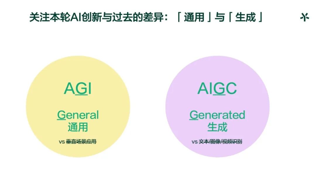 本轮AI创新与过去的差异至少体现在以下两个“G”:第一个是"通用"(General),第二个是"生成"(Generative)。围绕AI的“通用”和“生成”,需要做很多创新投入,也能创造很多新的可能。