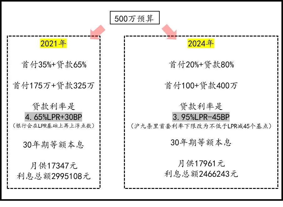 换句话说老周同样500万的预算,从2021年到此时此购房成本实打实降低了。