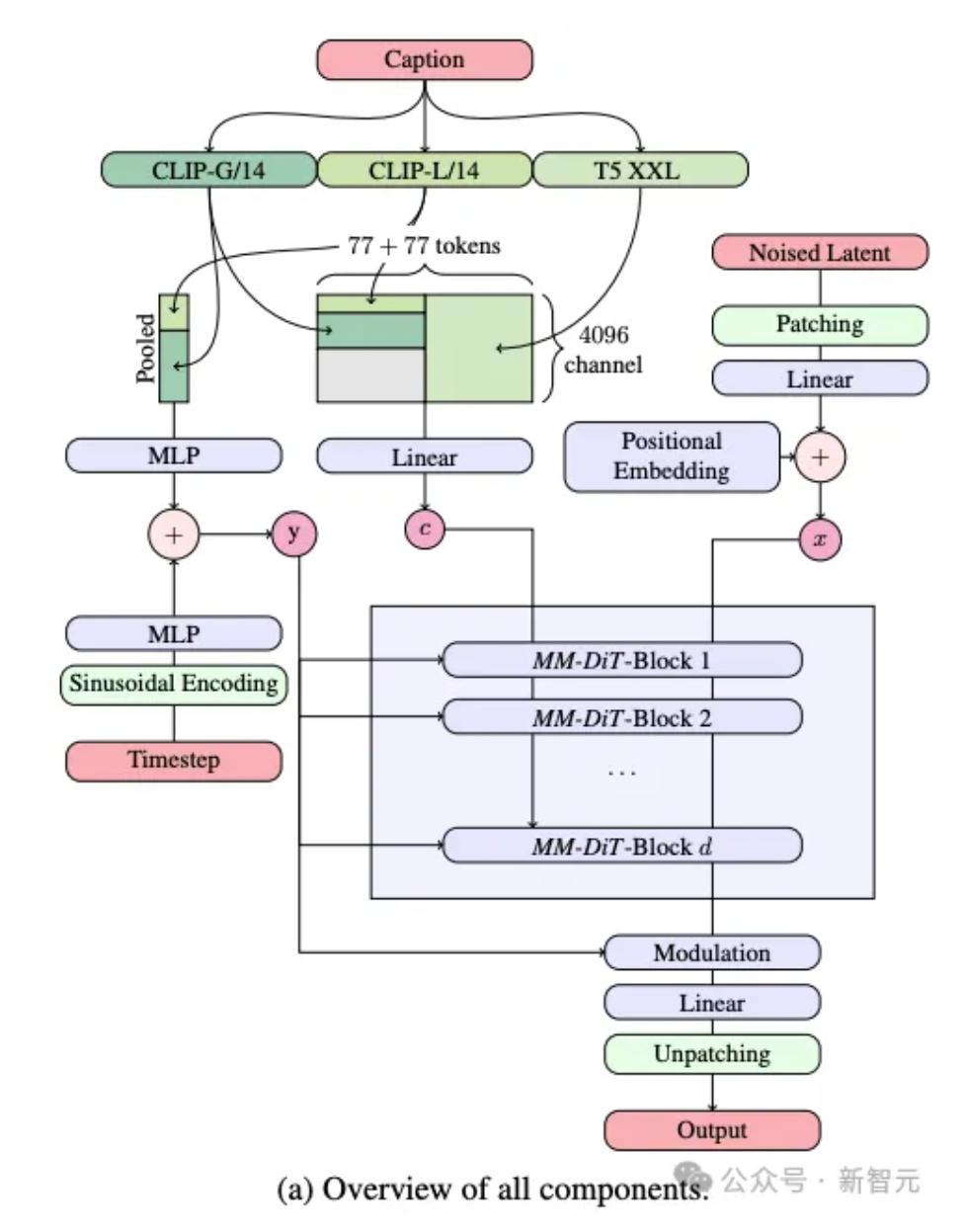 因此,研究者提出了一种全新的架构,称为——MMDiT(多模态Diffusion Transformer),专为处理这种多模态的能力。