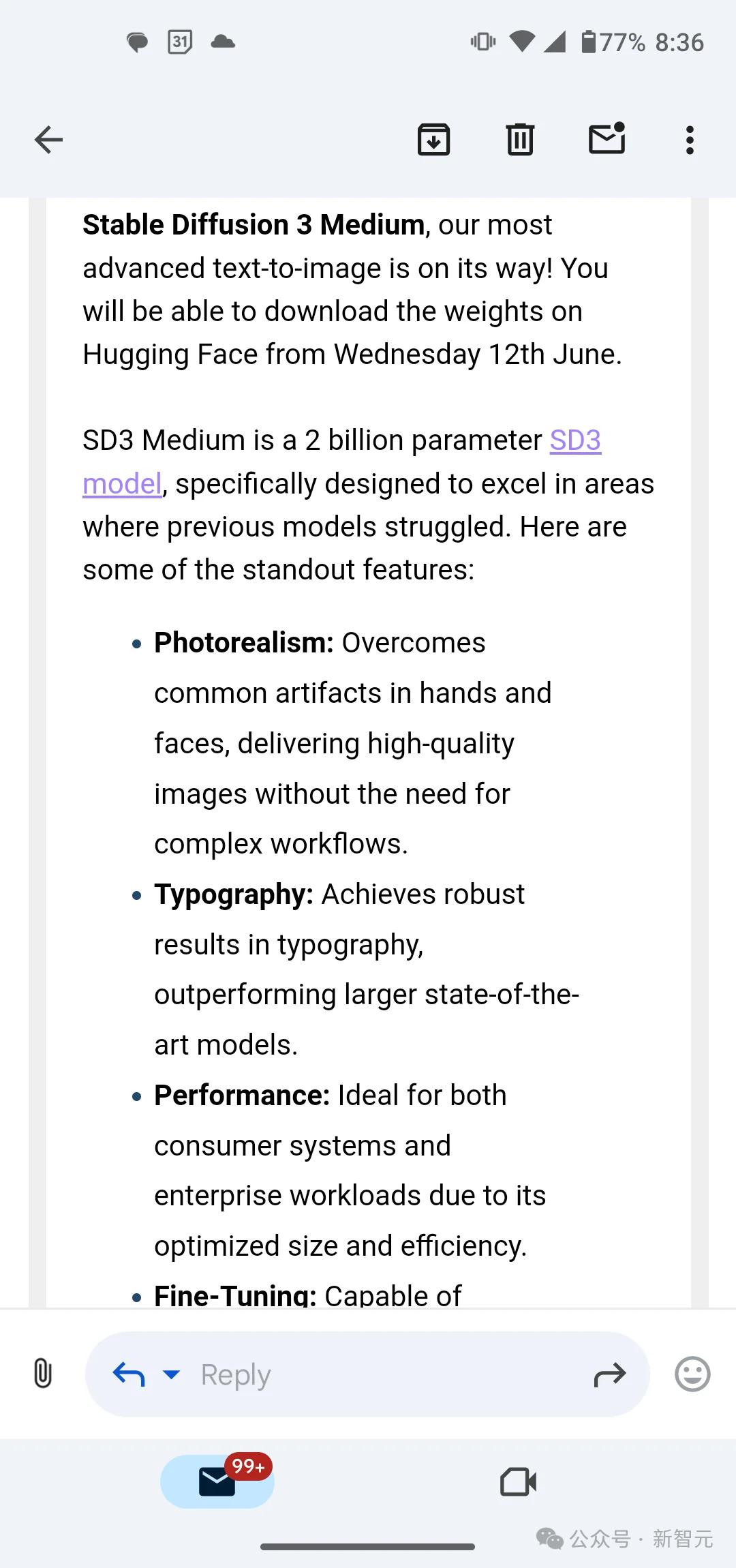 一些网友纷纷收到了Stability AI邮件,即将开源的SD3 Medium是一个20亿参数的模型。
