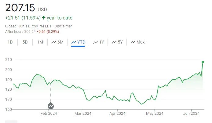 不过,一天之后,苹果股价大涨。截至当地时间6月11日收盘,苹果涨逾7%,创2022年11月10日以来最大涨幅,刷新2023年12月14日所创的收盘历史新高,自2021年11月30日以来首次领涨标普成分股。市场似乎反应过来了:苹果还有更大的野心。