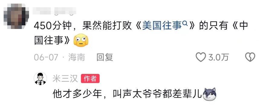 “ 450 分钟,果然,能打败《美国往事》的只有《中国往事》。”