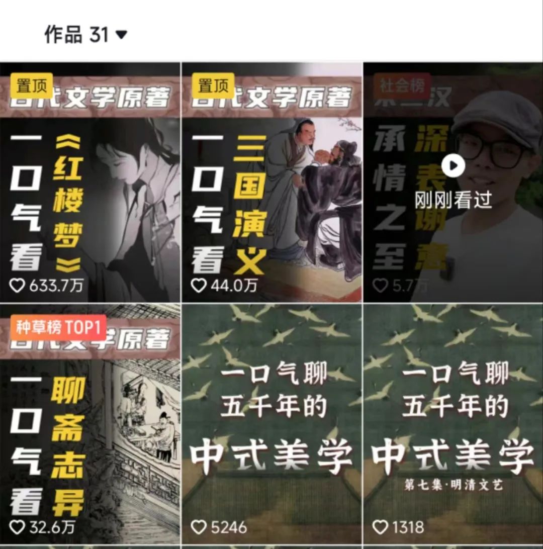 一条耗费他 5 个月时间制作出来的 “ 一口气看《红楼梦》 ” 视频爆火,开启了他的 “ 一口气快看文学原著 ” 系列。