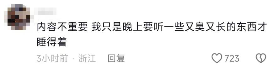 “ 内容不重要,我只是晚上要听一些又臭又长的东西才睡得着。”