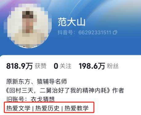 衣戈猜想介绍自己 “ 热爱文学、热爱历史、热爱教学 ” ,系列知识分享视频一直备受网友关注,二舅的视频让他爆火;