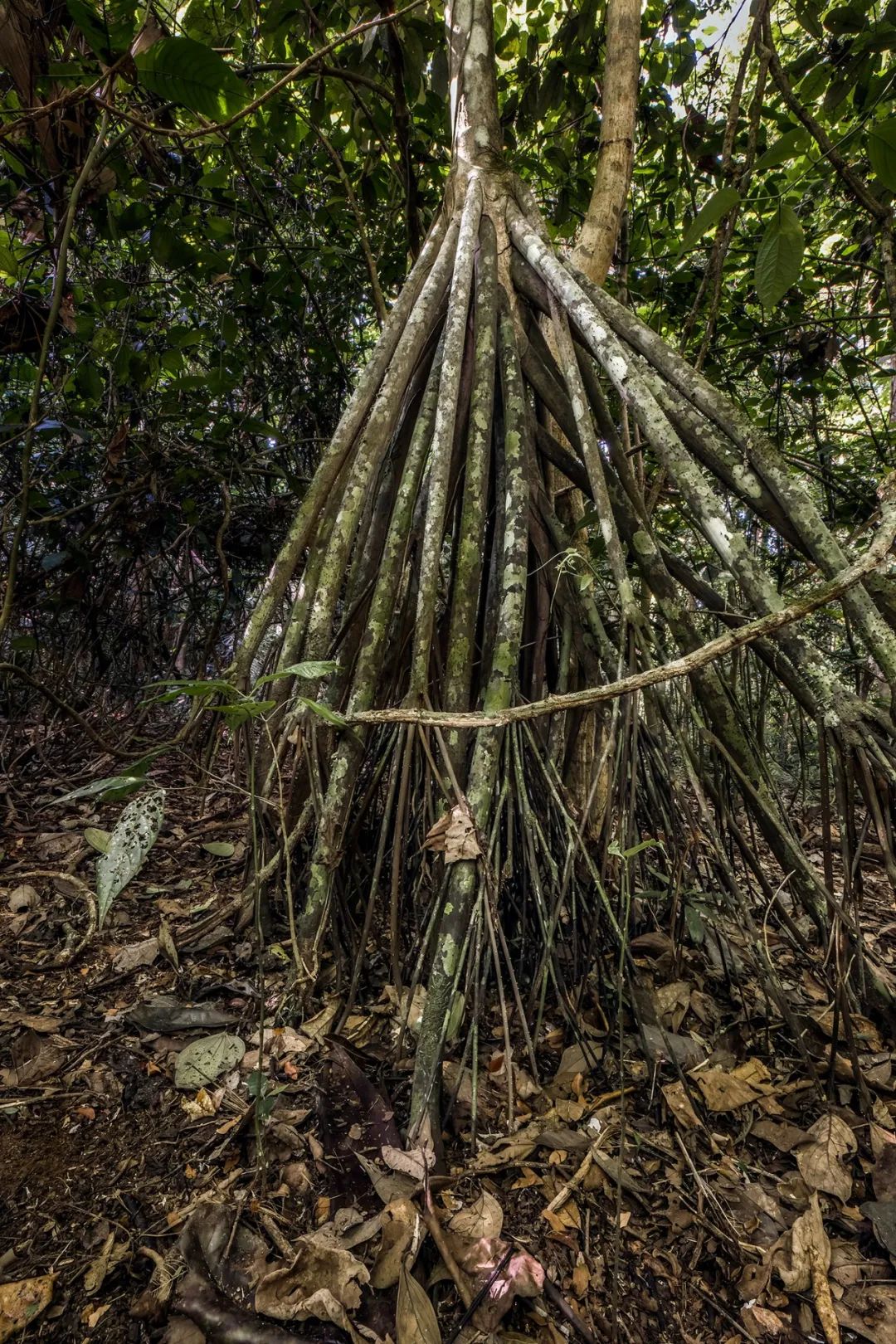行走棕榈树生长在中美洲和南美洲的热带雨林中,本身有20多米那么高,因此,这些树会长出长长的板根,为的是支撑树干,增强稳定性,而且还能向外延伸,在更大的土地区域内吸收养分。而行走棕榈树的板根细细长长,在周围的土地上扎根,看起来就像是一棵树长了许多条腿一样。
