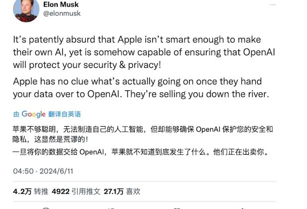 虽然马斯克这次喷苹果的点,是因为不放心把数据交给 OpenAI ,但是吧,马斯克是不是确实在乎隐私安全,这还真不好说。