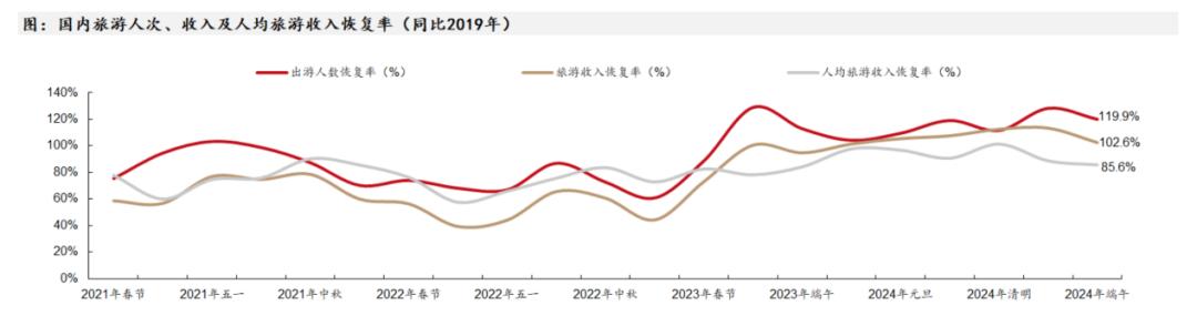根据文旅部公布的假期数据,2024年端午假期对比疫情前的恢复率:
