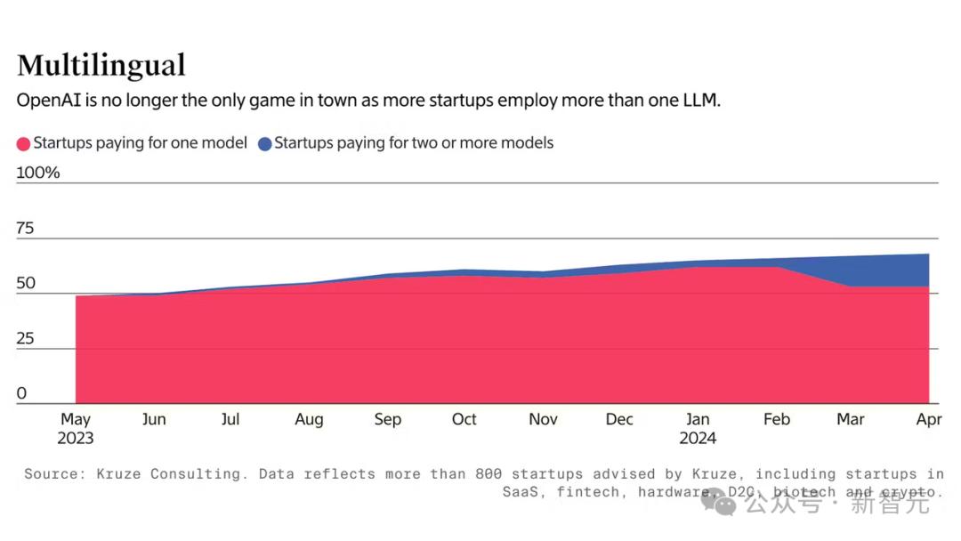 在过去的一年里,该公司800多家有风险投资支持的初创客户中,使用多个AI模型的比例显著增加,从去年夏天的1%增长到今年4月的15%。