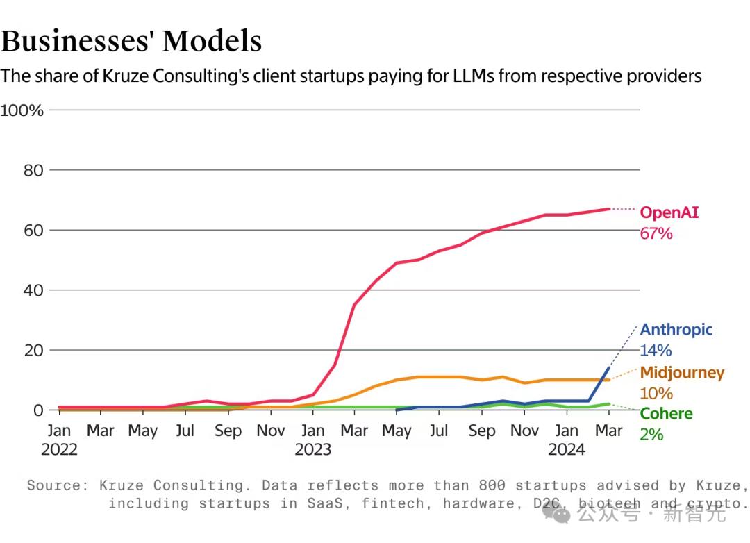 另一个例子是,Kruze的数据表明,最近几个月使用OpenAI的LLM的客户增长放缓。