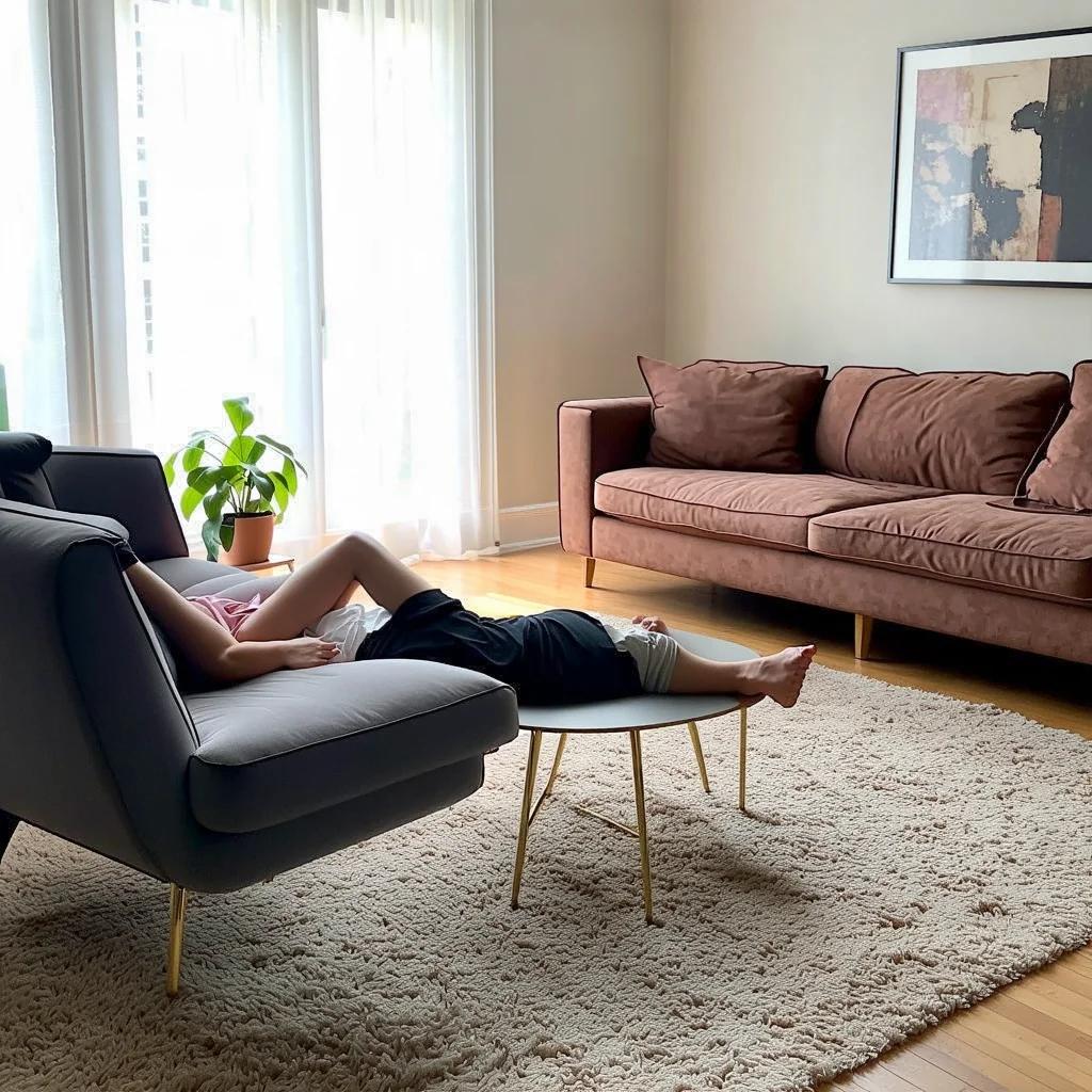 Reddit 用户使用 SD3 Medium 创建的 AI 生成图像,提示词为“一个人在客厅里打盹”