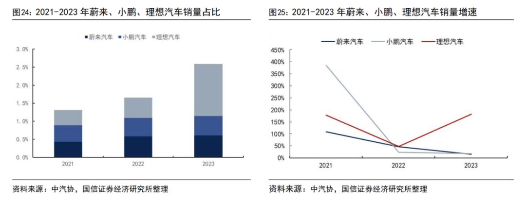 三家车企的销量增速,图源国信证券