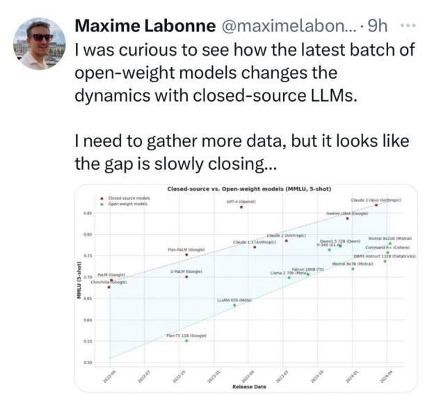 Gary Marcus 博士表示:“自GPT-4发布以来,多个模型在GPT-4水平性能上都有着巨大的收敛,然而并没有明显领先的模型。”