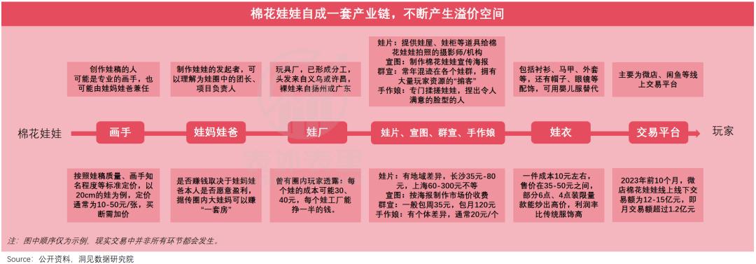 哪怕是明星同人娃这类“无盈利娃娃”,也有可以做文章的地方——在生产环节之外,围绕棉花娃娃的一整条产业链也在快速发展。