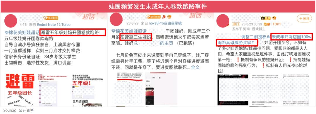 文文的经历不是个例,在娃圈,娃妈跑路是常态,“棉花美娃娃”超话里可以搜到大量维权的贴子,并且犯案人员低龄化趋势明显,一位跑路的娃妈甚至被扒出只是五年级的小学生。