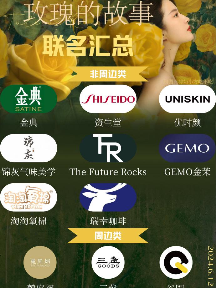 在剧外联名方面《玫瑰的故事》比较有看头。有网友统计,目前已经达到11款联名,其中既有总冠名金典,又有护肤品牌资生堂、优时颜,还有难得和影视剧联名一次的瑞幸,以及众多新消费品牌。