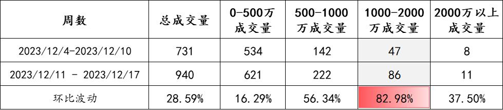 但是政策第三周开始,成交变化开始从500万以下的价格段往高总价迁移 。