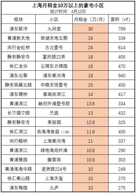 我整理一下上海月租金10万以上的豪宅,发现还真不少 。