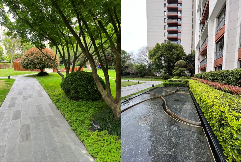 社区环境就更不用说了,水景、绿化维护得很干净整齐 。