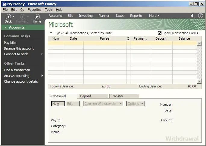 这种弱化突出效果,更加简洁、平面化的设计在微软当时的其他一些产品中也能见到。(比如下图所示的 Microsoft Money 2000。)