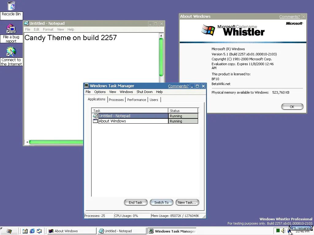 随着时间的推移,当时「Whistler」项目里的更多主题逐渐被揭开。其中一个主题名叫「Candy(糖果)」,制作时间大概在 2000 年 6-8 月。