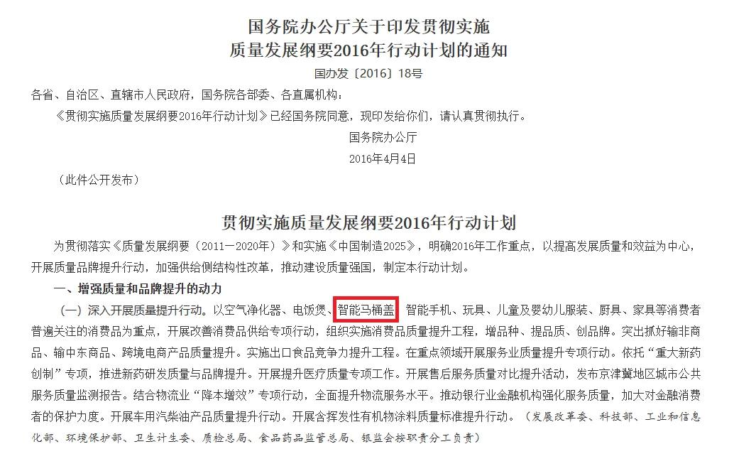 该行动计划,以消费者普遍关注的消费品为重点,组织实施消费品质量提升工程。在众多消费品中,智能马桶盖赫然在列。